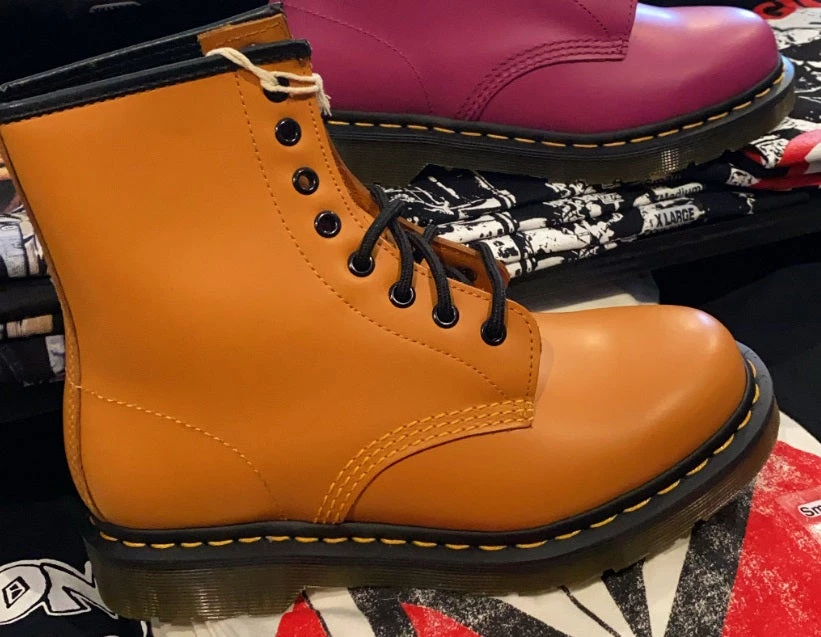 The Original DM’s boot. In more shades than ever. Each season, we expand our collection with new shades of our signature Smooth leather. Each pair stays true to the boot’s six-decade-old design, with a Trans colored sole, yellow welt stitching and a black and yellow AirWair heel loop.
