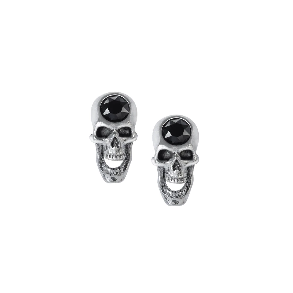 Show your edge all day every day with these small but perfectly formed screaming skulls! A pair of discreet pewter skull ear studs with their jaw wide open and a black Swarovski crystal set into its dome.