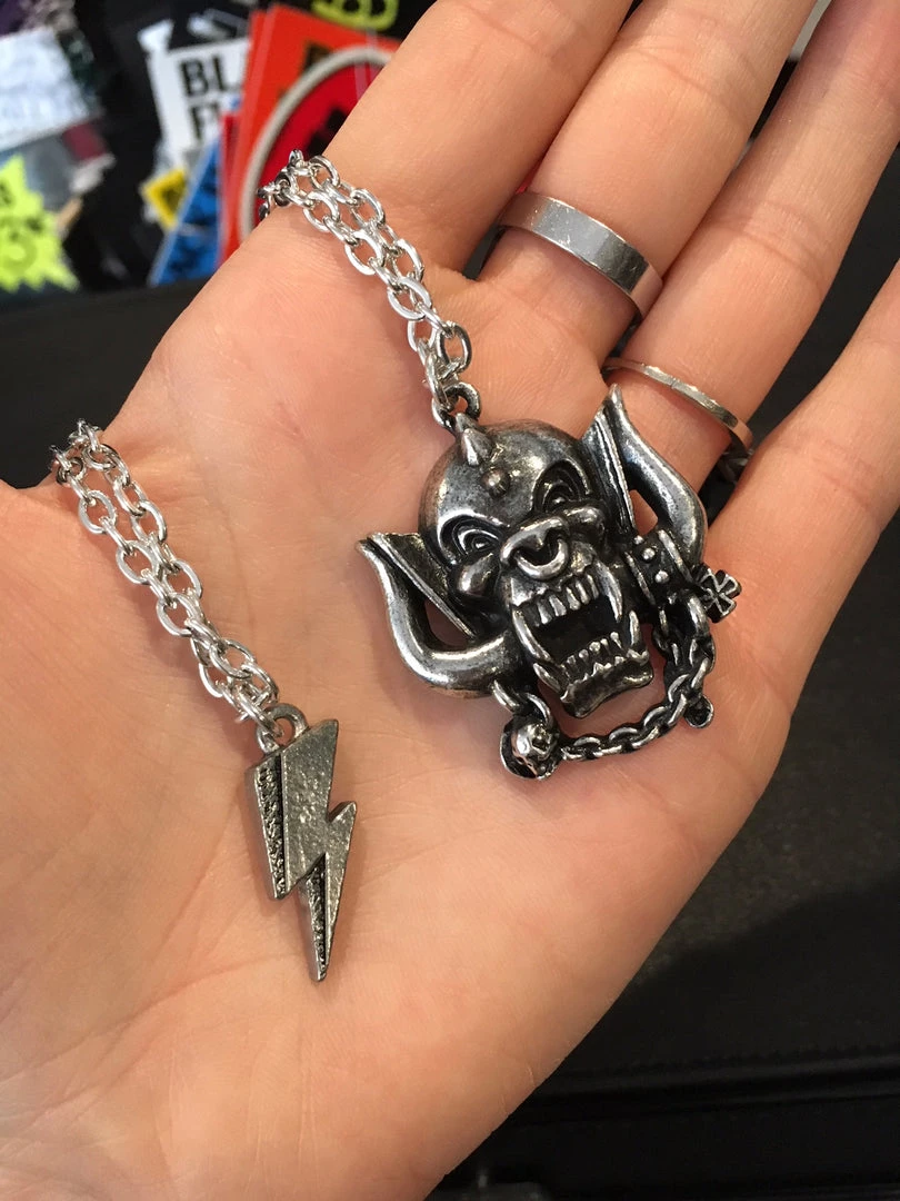 The original War-Pig or ‘Snaggletooth’, animal skull hybrid, created by illustrator Joe Petagno in 1975, at the request of, and with conceptual input from Lemmy Kilmister.