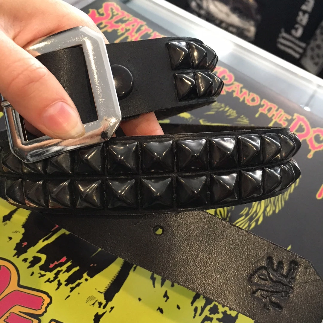 Black 2 Row Black Leather with Black Pyramid Studs Belt