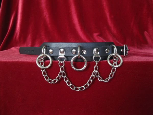 High quality 3-ring bondage wristband with chains – 1.25″ wide