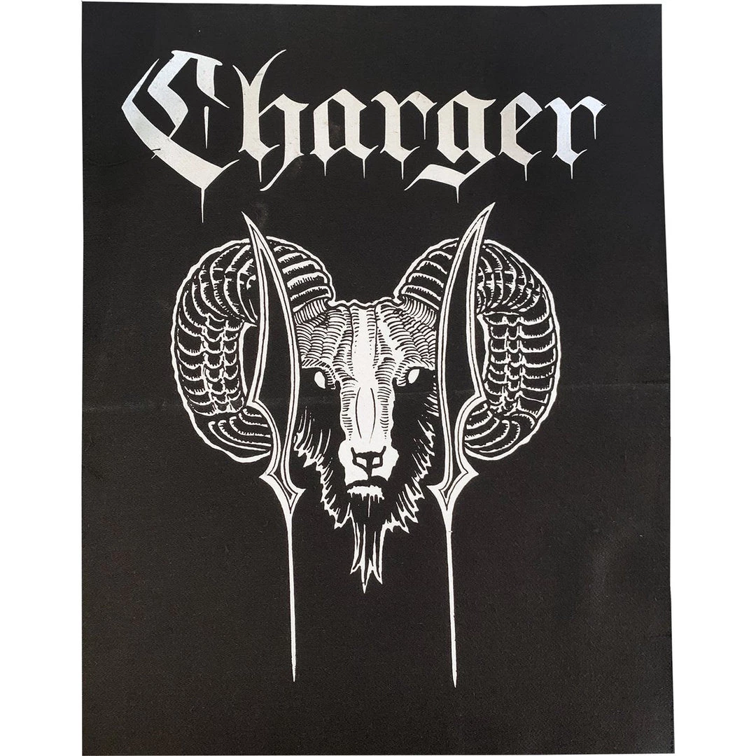 Charger “Ram” logo black back patch. Measures 14″x19″.