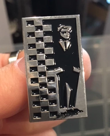 High quality lapel pin that features a Checkered Side with Rude Boy in a rectangular shape.