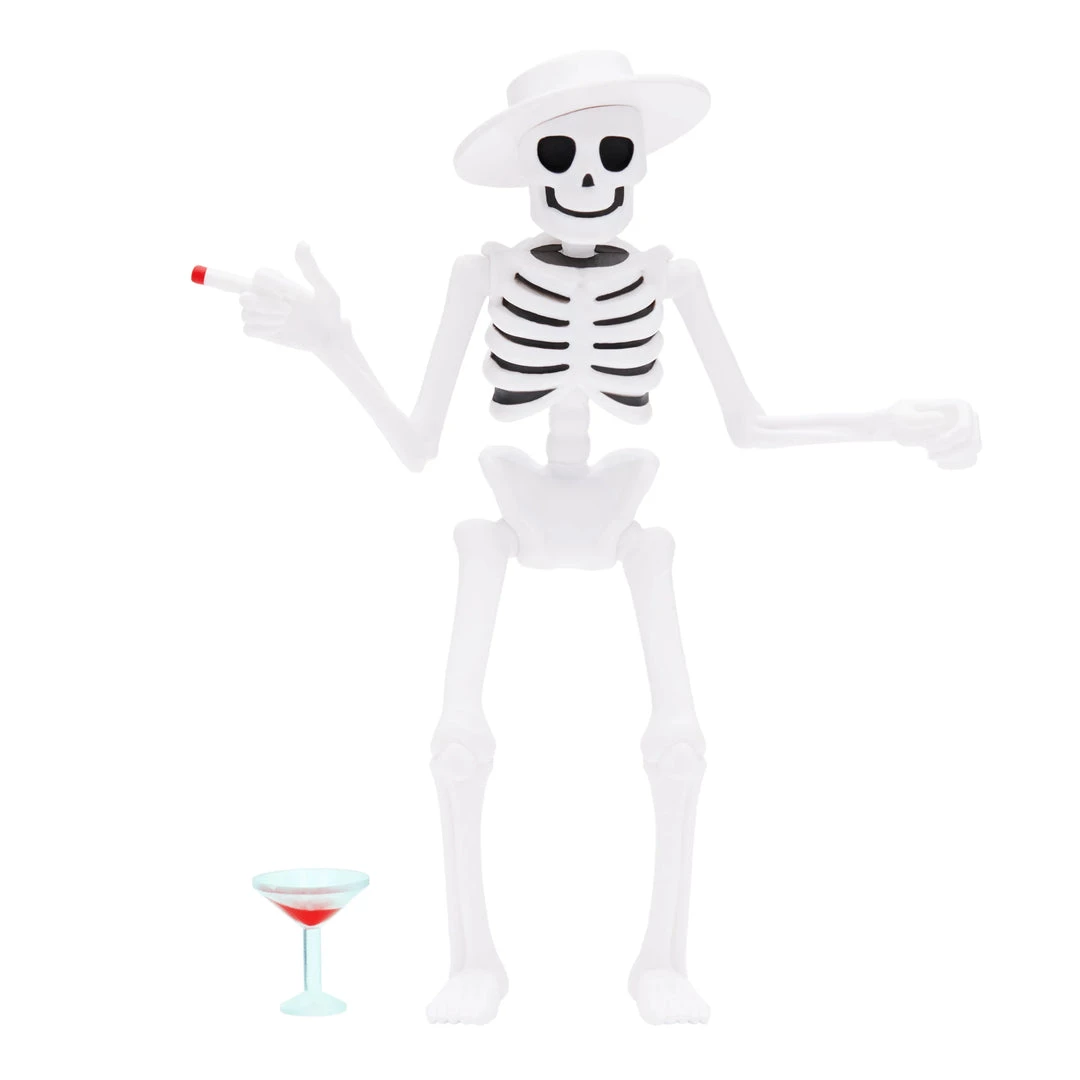 Join the punk rock party with the iconic mascot of Social Distortion, Skelly! This 3.75” articulated Social Distortion ReAction figure of Skelly features the jaunty skeleton with trademark hat and cigarette as well as martini glass accessory. He’s as timeless as the band itself and the story of your collection won’t be the same without the Social Distortion ReAction figure of Skelly!