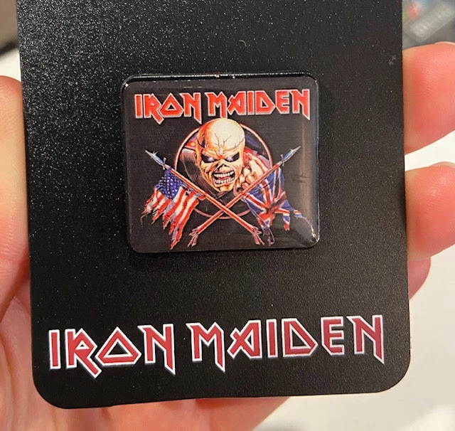 Iron Maiden….on a pin! Rad little square enamel pin, single backing.