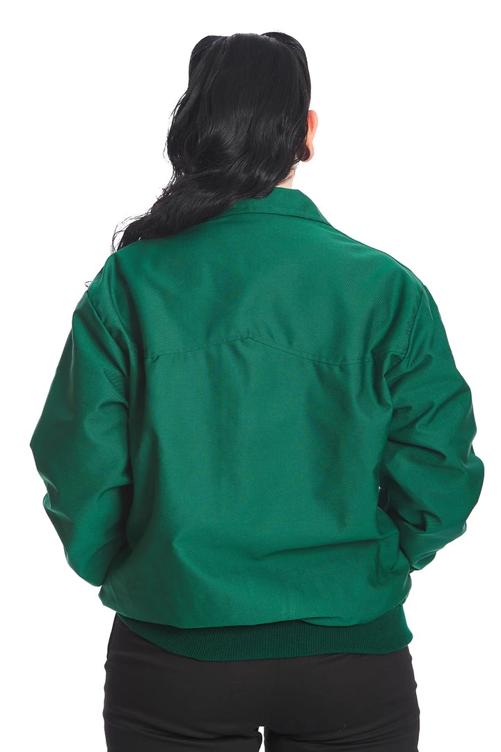 This rad, lightweight Harrington jacket features a red plaid (tartan) lining, side button close pockets and a zip up front.
