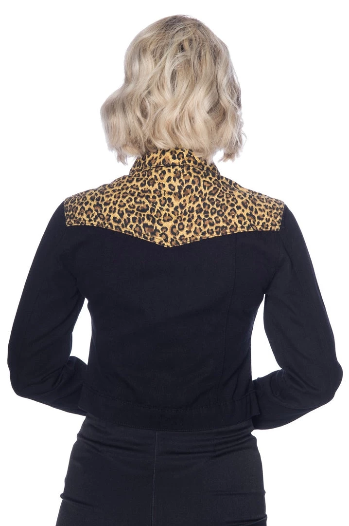 Rock N Roll FELINE! This jacket is for you, it’s full of sass, and of course, leopard print. This black denim is fitted, and slightly cropped to sit perfectly at the waist line. MeOW!