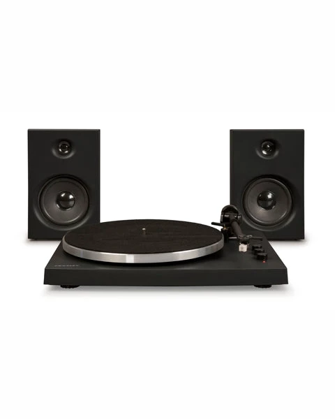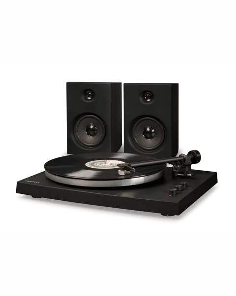 The Crosley T150 is a complete, easy to set up turntable system right out of the box. Whether you’re savoring the warm sound of vinyl or streaming digital music via the built-in Bluetooth receiver, the included stereo speakers offer 30 watts of crisp, loud sound. The built-in, switchable preamp allows you to easily pair with any stereo component of your choice. Take control of your analog listening experience thanks to a pitch control knob, an aluminum tone arm with adjustable counterweight, and RCA outputs that allow you to hook this turntable into an existing audio system. Changing the speed of the turntable is a simple turn of a knob, making it easy to switch between 33 1/3 and 45 RPM records. The moving magnet cartridge is pre-mounted and aligned at the factory, but uses a standard 1/2” mount so you can switch up cartridges as your vinyl collection grows and your discerning ear develops. Don’t let the minimalistic silhouette and clean lines fool you – The Crosley T150 is packed with all of the features you’ve been asking for.