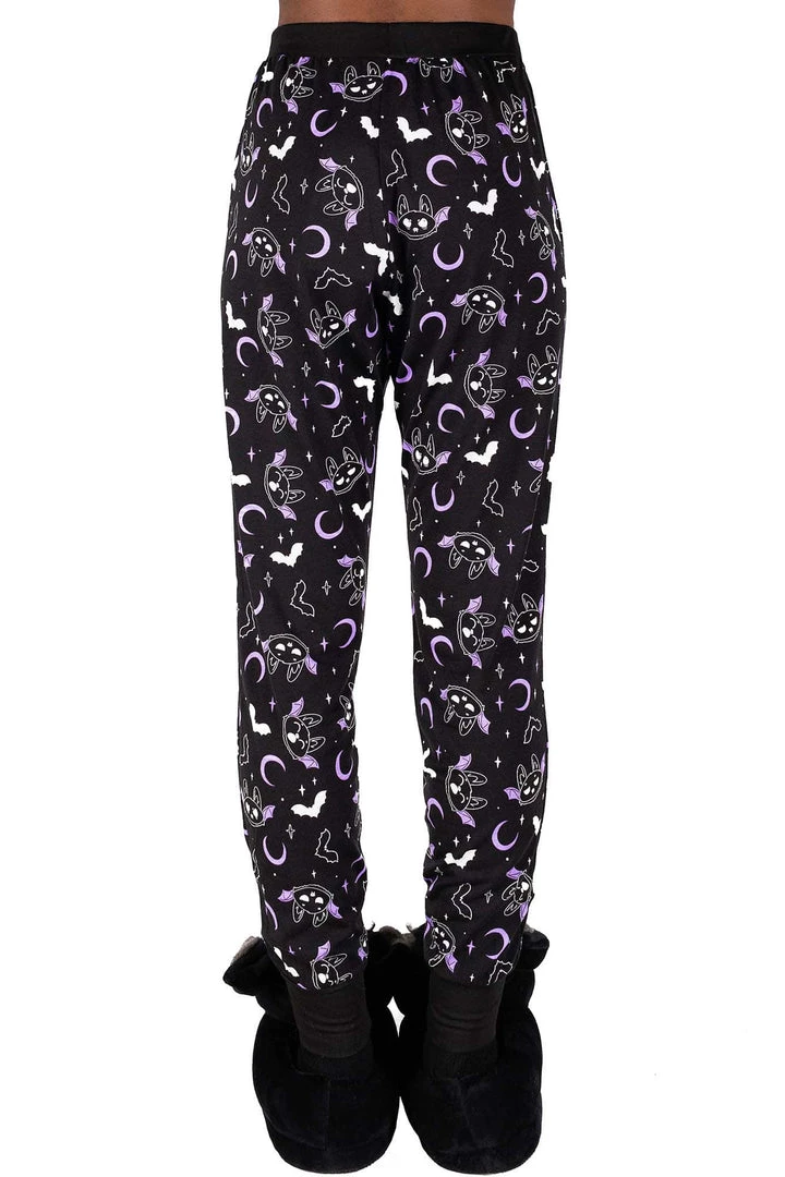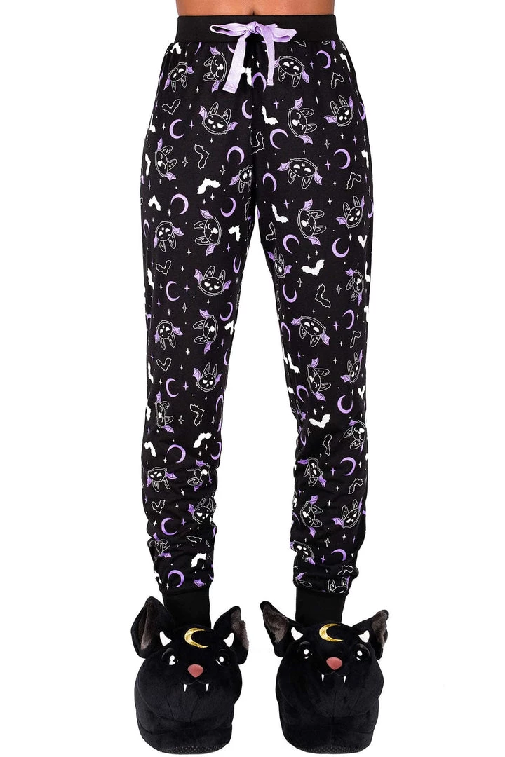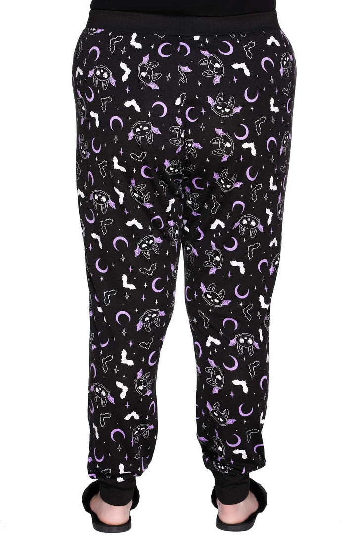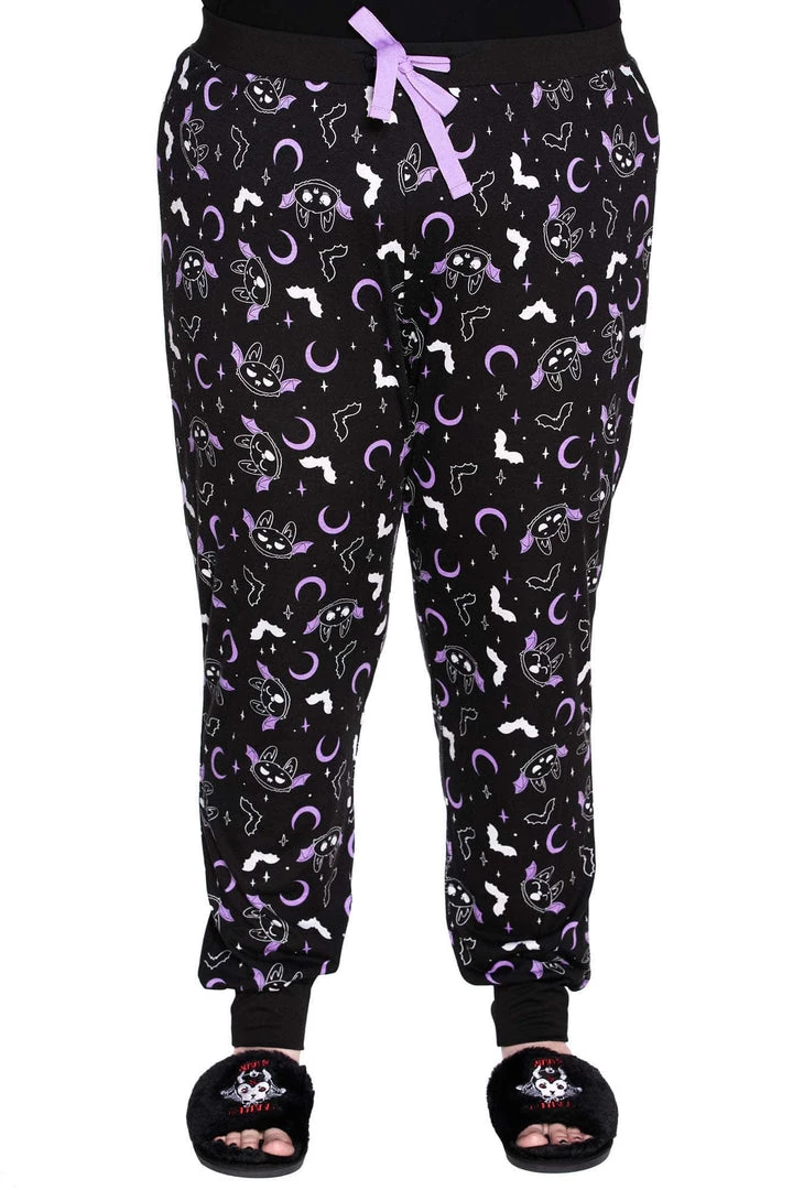 I am great in bed…I can sleep for days! The ‘Batty’ lounge pants are perfect for lazy days, sleep-overs, naps and movie-marathons. Featuring a super soft fabric for extra cozy fit and comfort. Adorned with a statement print, contrast cuffs + waistband, elastic waist and drawstring.