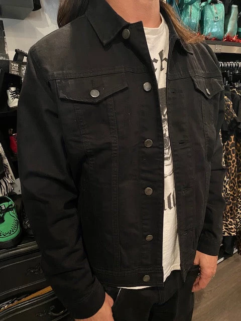Back in Black – Everyone needs a classic black denim, and this one has all basics covered!  Featuring all the classic pockets like a denim – this button up, long sleeve jacket fits killer and is the perfect blank canvas for patches, pins & studs – looks killer on its own too!