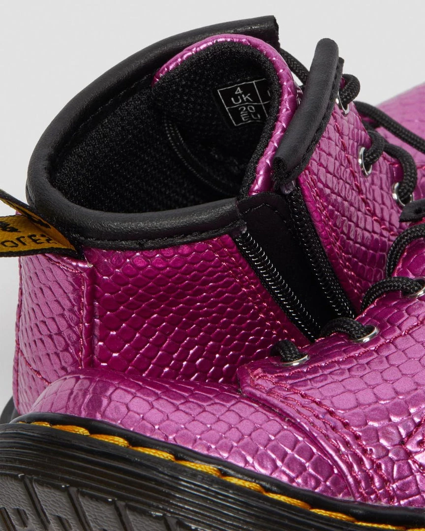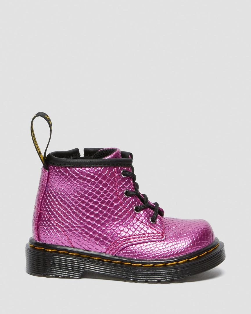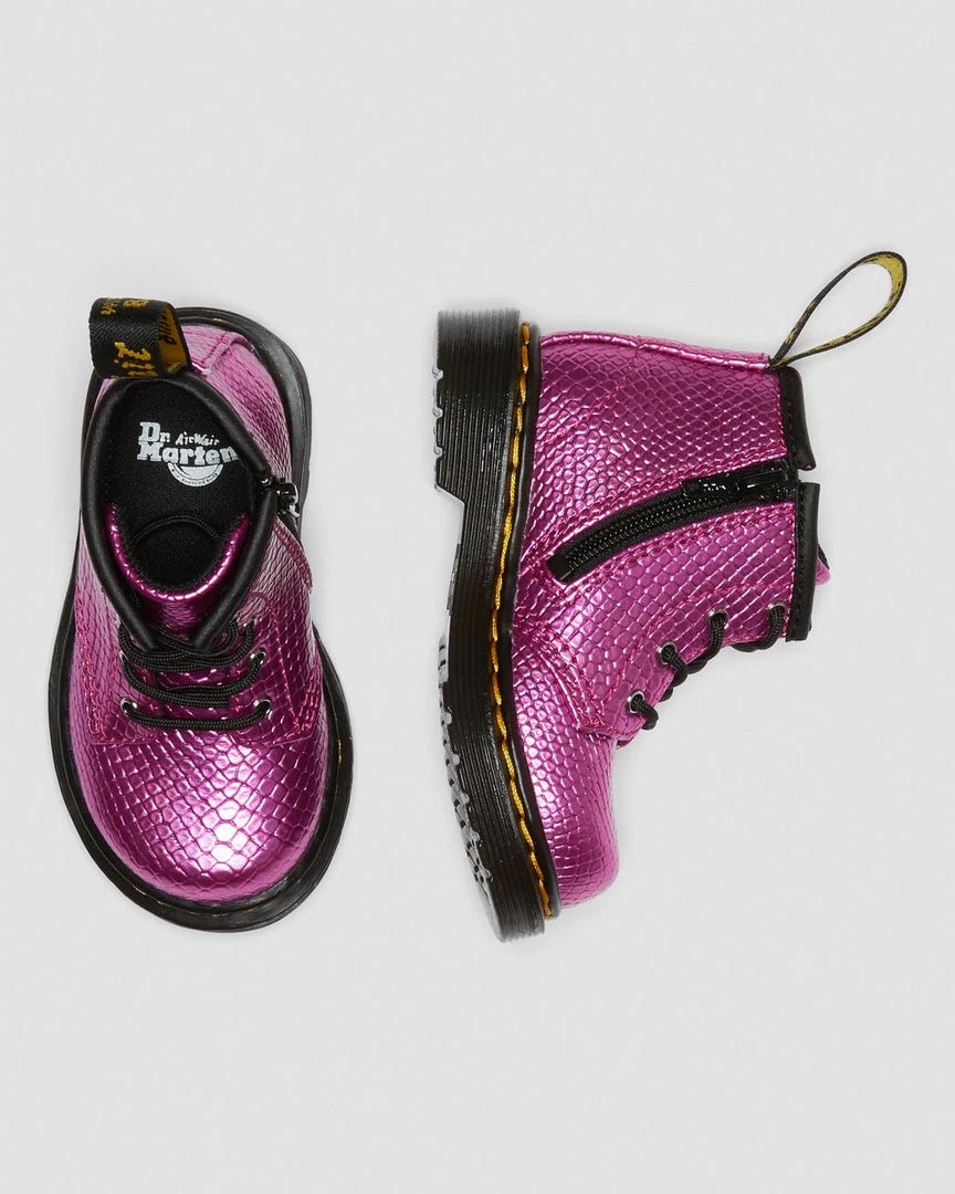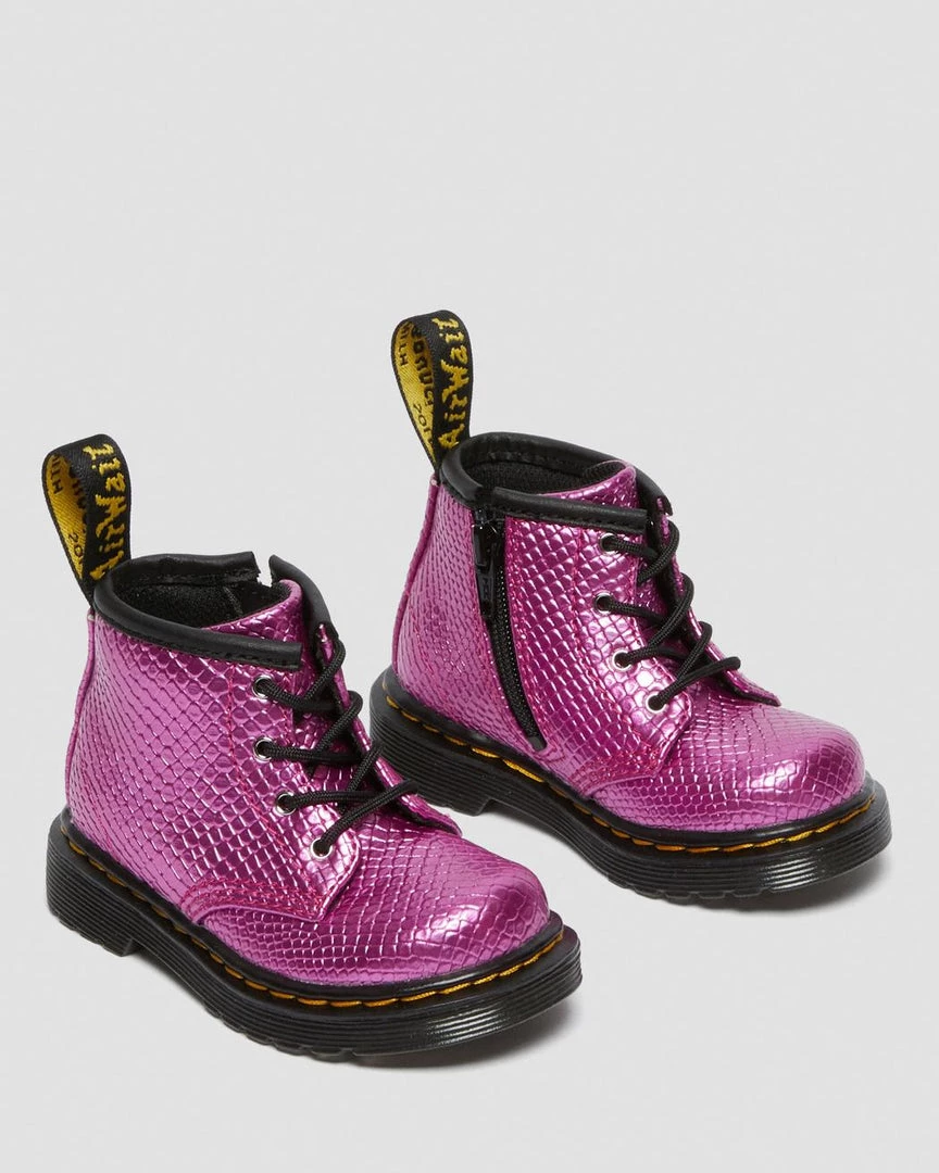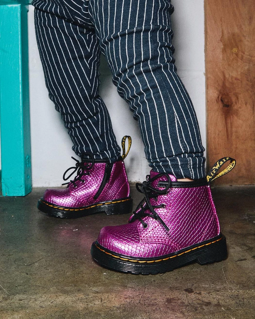 Punk attitude starts young. We’ve reimagined our Original boot in a standout metallic reptile material for little feet. Inspired by decades of punk heritage, they demand attention. Whatever the season. The boots have a medial zip for easy on/off access as well as a hidden padded collar to keep little feet comfortable.