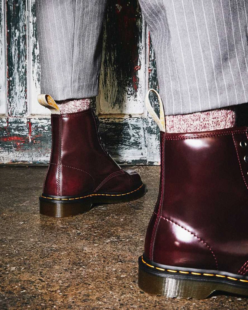 The 1460 is the original Dr. Martens boot. The boot’s recognizable DNA looks like this: 8 eyes, grooved sides, a heel-loop, yellow stitching, and a comfortable, air-cushioned sole. But this boot goes one step further, with a cherry-red synthetic material and a 100% vegan construction.