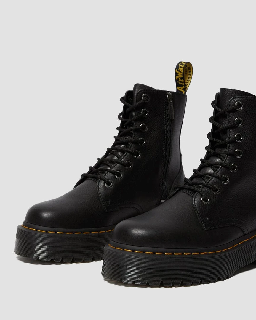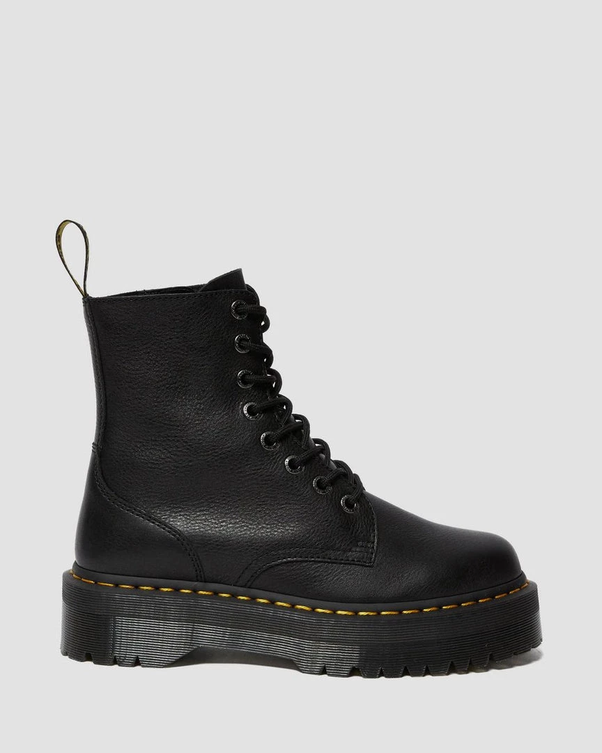Our smash hit Jadon never stops evolving. An amped-up evolution of the Original Docs boot, this season’s rework sees one of our bestsellers reimagined in a softer Pisa leather. Standing on a towering 1 1/2 inch sole, it’s unmistakably a Docs boot with stand out yellow stitching and black and yellow heel loop. Finished with a side zip for easy on/easy off accessibility.