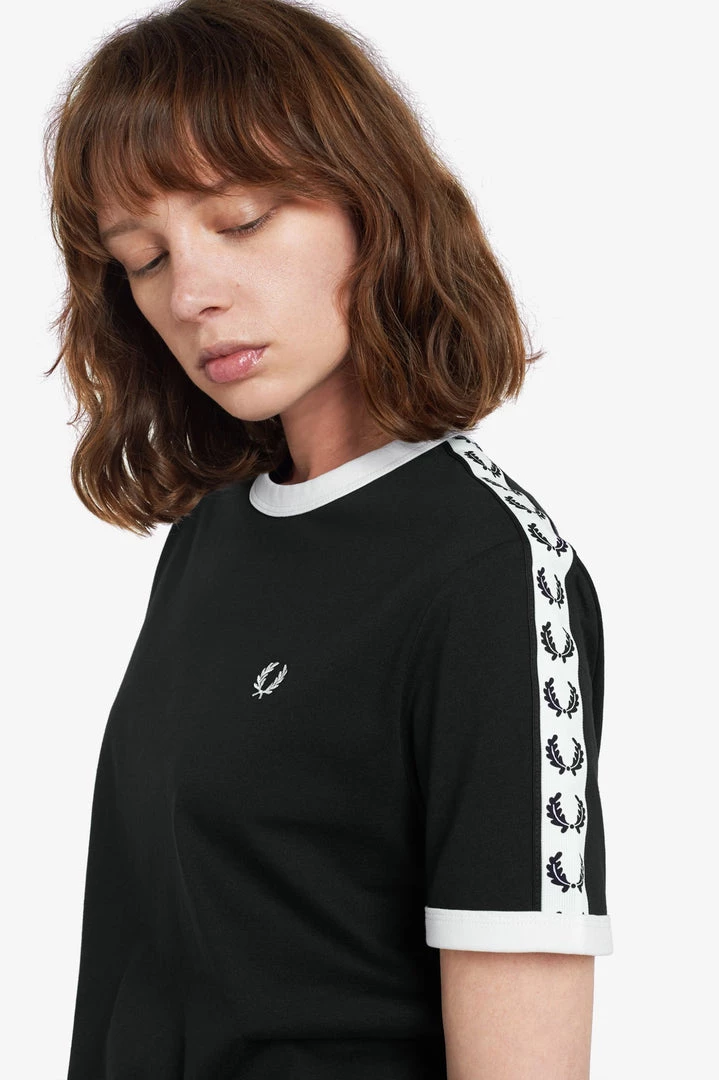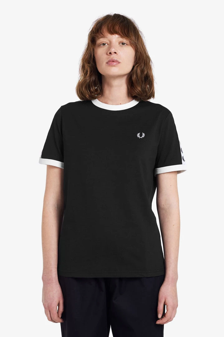 Defined by its contrast rib neck and cuff, our ringer T-shirt is trimmed with our original Laurel Wreath track tape at the sleeve.