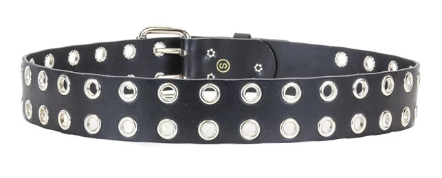 Classic Eyelet belt featuring 2 rows, a buckle closure & real, genuine black leather.