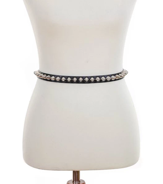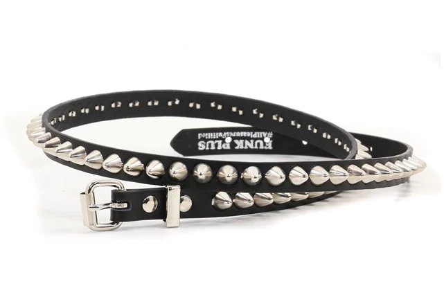 Single Row Black Leather with Tall British Silver Pyramid Stud Belt