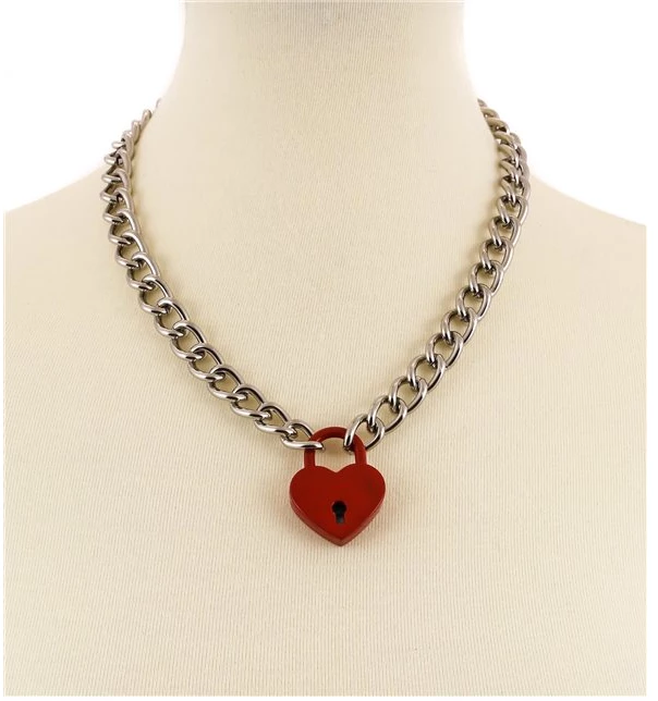 “I found the keys keys, Yeah the keys to your heart heart, Yes I got them on a chain chain….” Shiny Silvery Chain with Red Heart Lock Necklace. Heart Lock opens & closes to get on.
