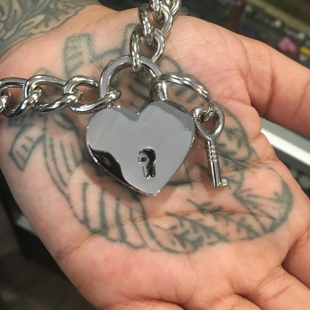 “I found the keys keys, Yeah the keys to your heart heart, Yes I got them on a chain chain….” Shiny Silvery Heart Lock Chain Necklace. Heart Lock opens & closes to get on.
