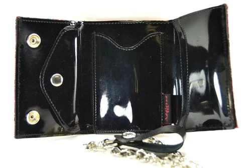 Stash your cash with this tri- fold chain wallet featuring a navy blue plaid exterior & a snap closure. Holds all the essentials!