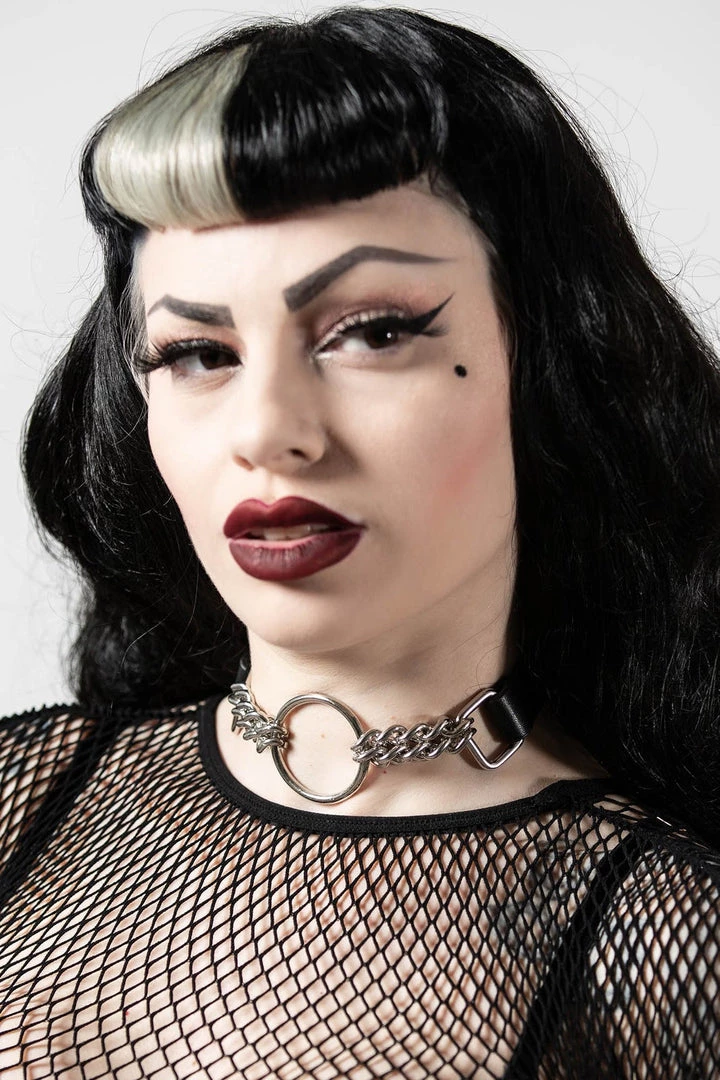 Get pretty in leather and chains in our ‘Angelina’ choker. Crafted in high quality vegan leather with a statement O ring, chains and spikes this choker is sure to cause a scene. So simple to style and fully adjustable this will add an edge to any outfit.