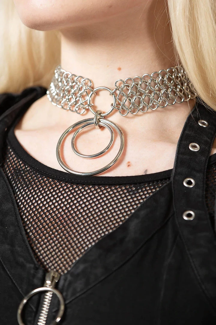 – Statement metal O-ring choker.