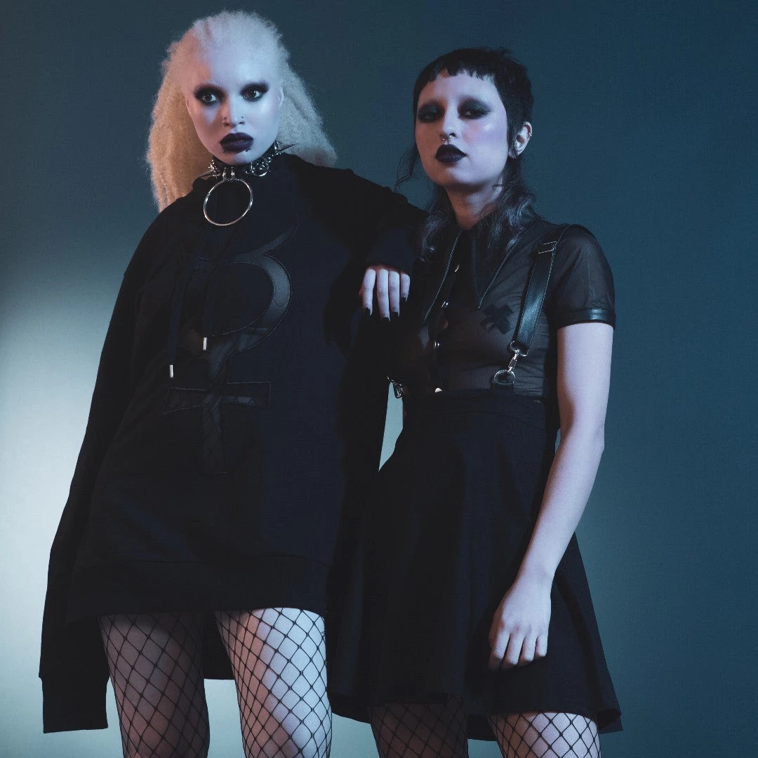 Be a celestial beauty in our ‘Cosmic Katy’ Suspender dress. Conjured in soft, stretch fabric with stretch mesh underlay to create the perfect fit. Complete with a skater skirt bottom, adjustable faux leather straps and faux leather collar you’ll feel outta this world. A staple piece for any star gazer.