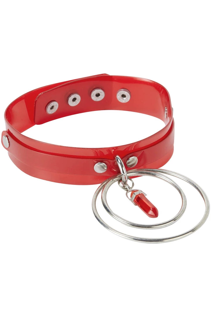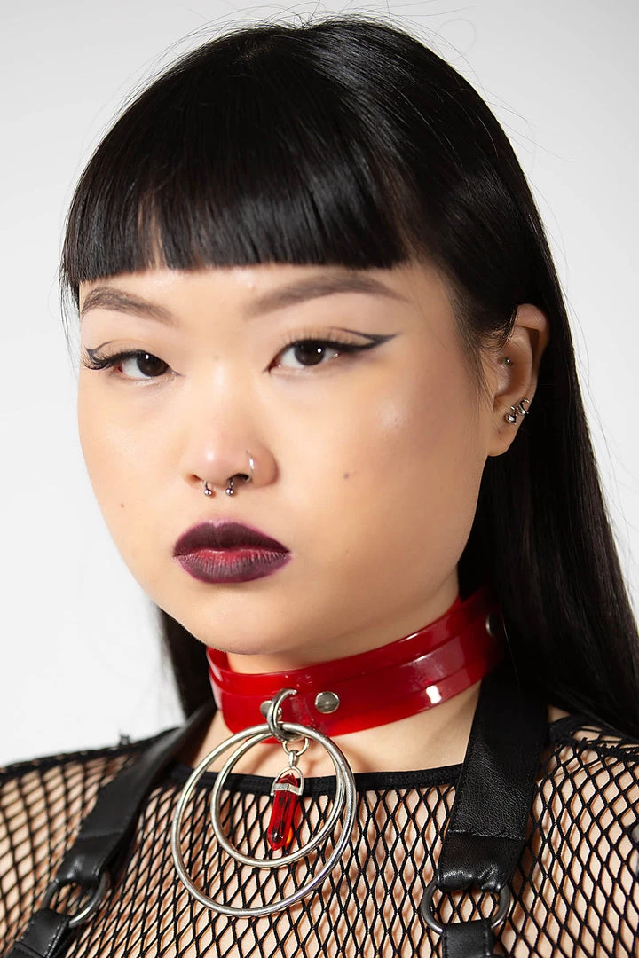 Step up your choker game with the enchanted ‘Crystal Visions’ choker; a shinny plastic body with dual strap construction, crystal pendant and hardware O-rings. Fully adjustable for the perfect fit.