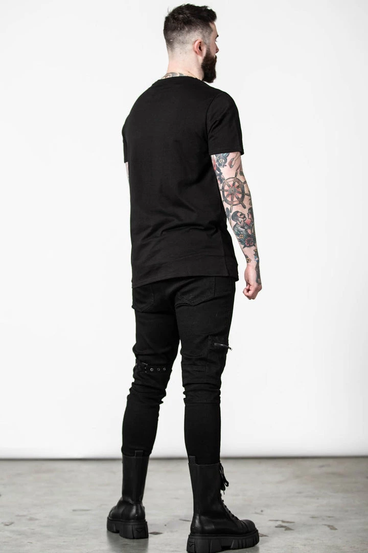Get your wardrobe possessed with our ‘Deimos’ t-shirt. Crafted in soft-touch cotton jersey with a detailed statement black-on-black graphic on the front. A perfect staple piece for your day-to-day adventures.