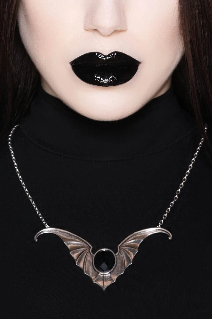 Spook up yer fav lookz with the ‘Dark Minds’ necklace; combining a luxe silver finish with bat wings design featuring a black resin cabochon.