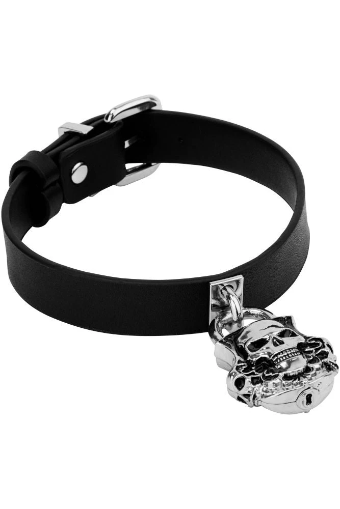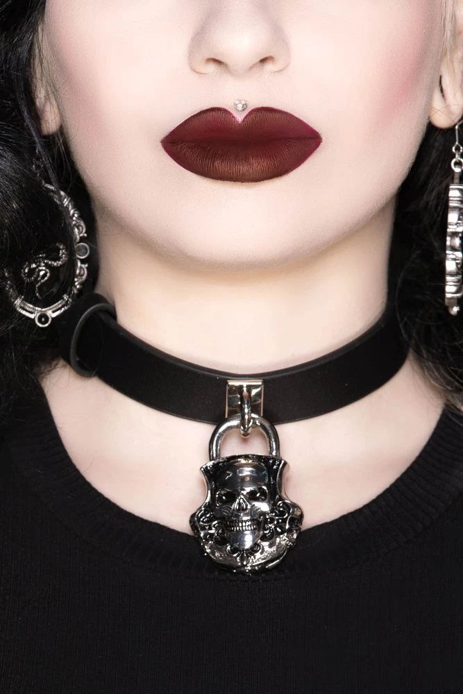 Hold yer head up high and step up yer choker game with the ‘Lock Me Up’ choker; a silver finish with a statement skull charm. Fully adjustable for the perfect fit. Be ready to make heads roll! Adds instant drama to yer lookz!