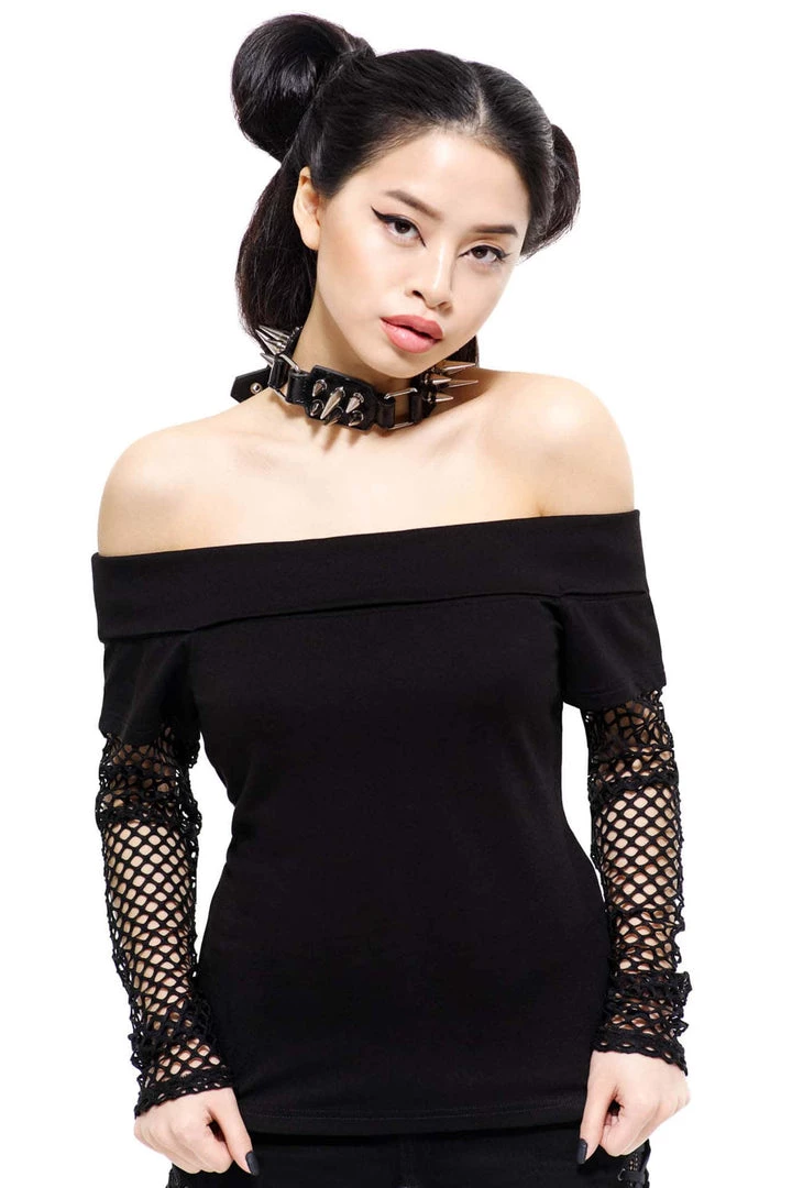 Hell yeah – Fishnet! The ‘Rebelle’ fishnet top is composed of super-soft jersey, long fishnet sleeves and bardot neckline. Easy to wear and very versatile, a must-have for any dark souls wardrobe.