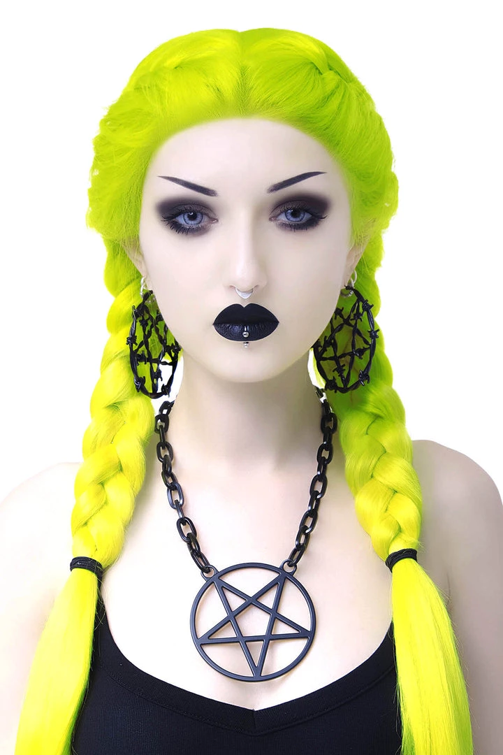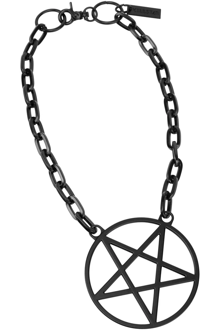 Callin’ all the night creatures out there! Our ‘Hextasy’ chain choker features a black statement pentagram design on a black chain with an extender to adjust the size.