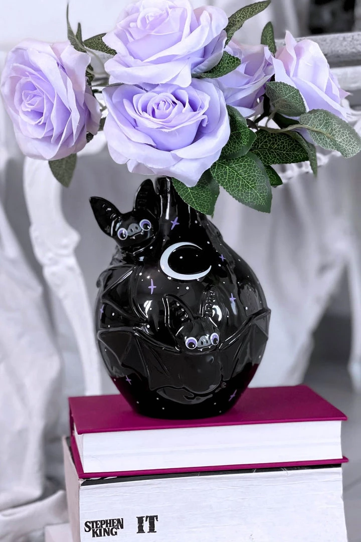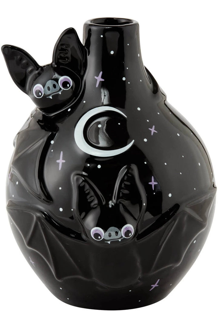 Add a bit of spooky cuteness to your crypt with our ‘Batty’ vase – complete with a glossy black finish and moon + stars detailing. Perfect for yer black florals, makeup brushes, twigs, and whatnot. Boooo-tiful!
