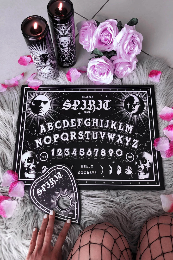 The must-have piece for every dark soul with a fascination of the dead – our ‘Spirit Board’. Made of wood and finished with a large sticker and planchette, this board oozes seriously dark V-I-B-E-S! Completes yer life perfectly and the ideal gift!