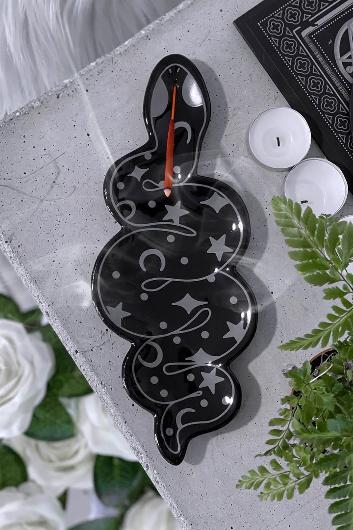 No crypt is truly complete without an incense holder and there is no better for a dark soul than our ‘Kundalini’ incense holder. Made using ceramic, glossy black finish with print of moons and stars and in a snake shape. [Check our premium incense too!]
