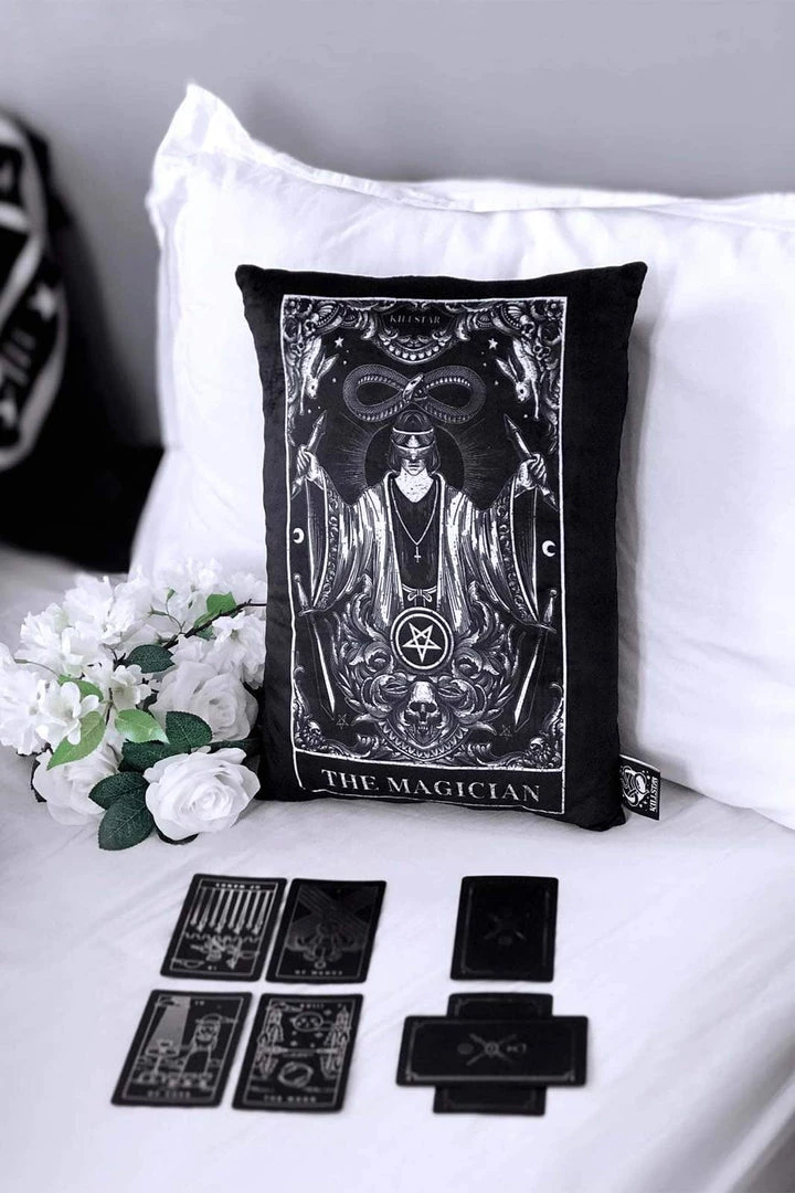 Make the magic happen. Complete your dream crypt with the ‘Magician’ throw pillow. Made from a soft touch fabric, with a large contrasting graphic print. Ideal for decorating your bed, couch or get a few to scatter around your ritual circle.