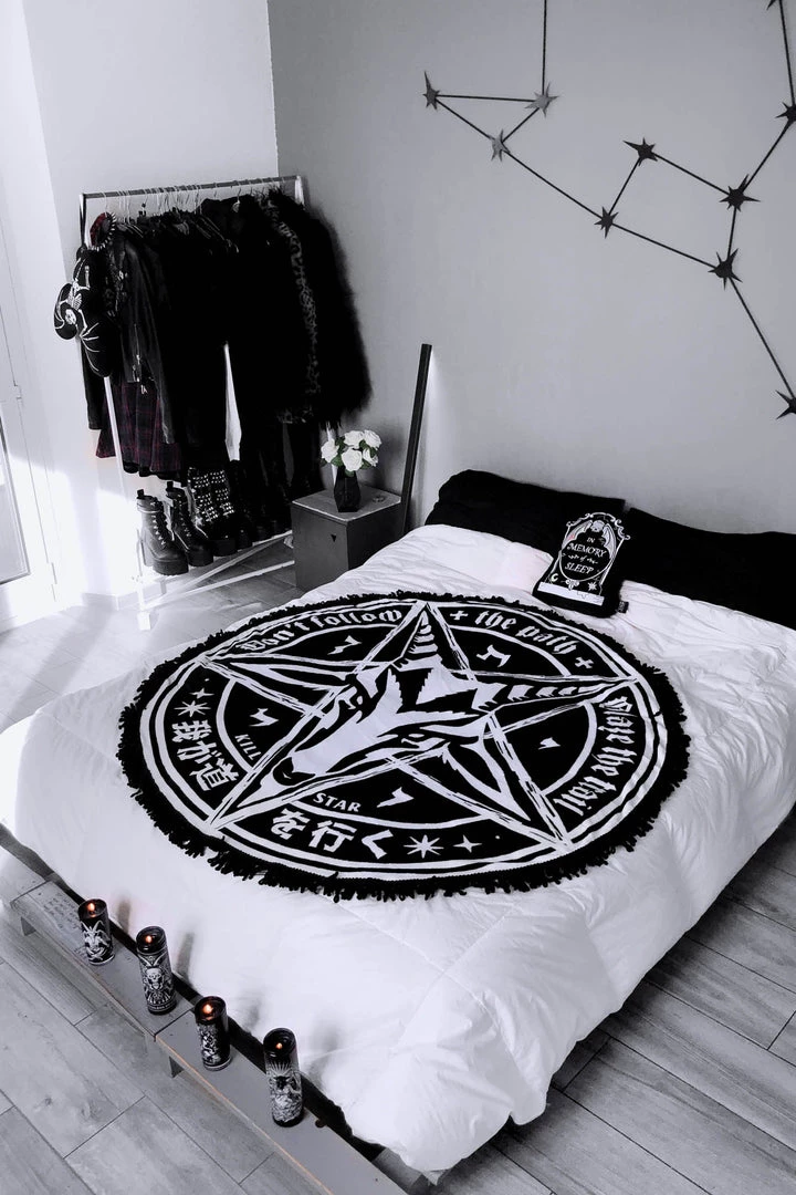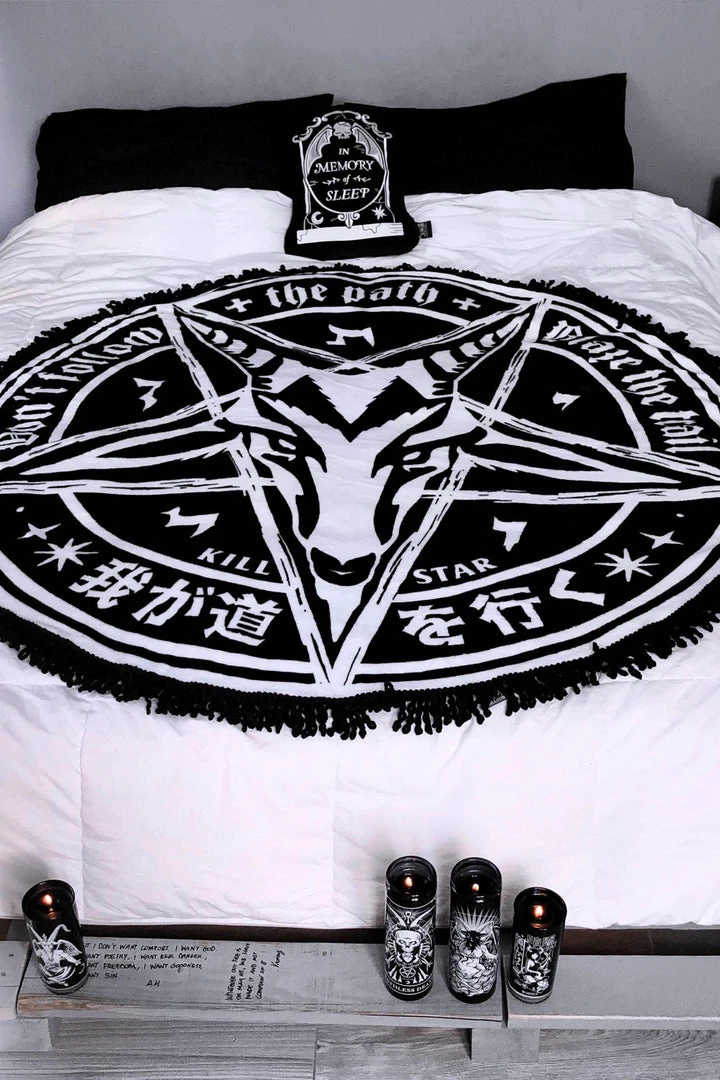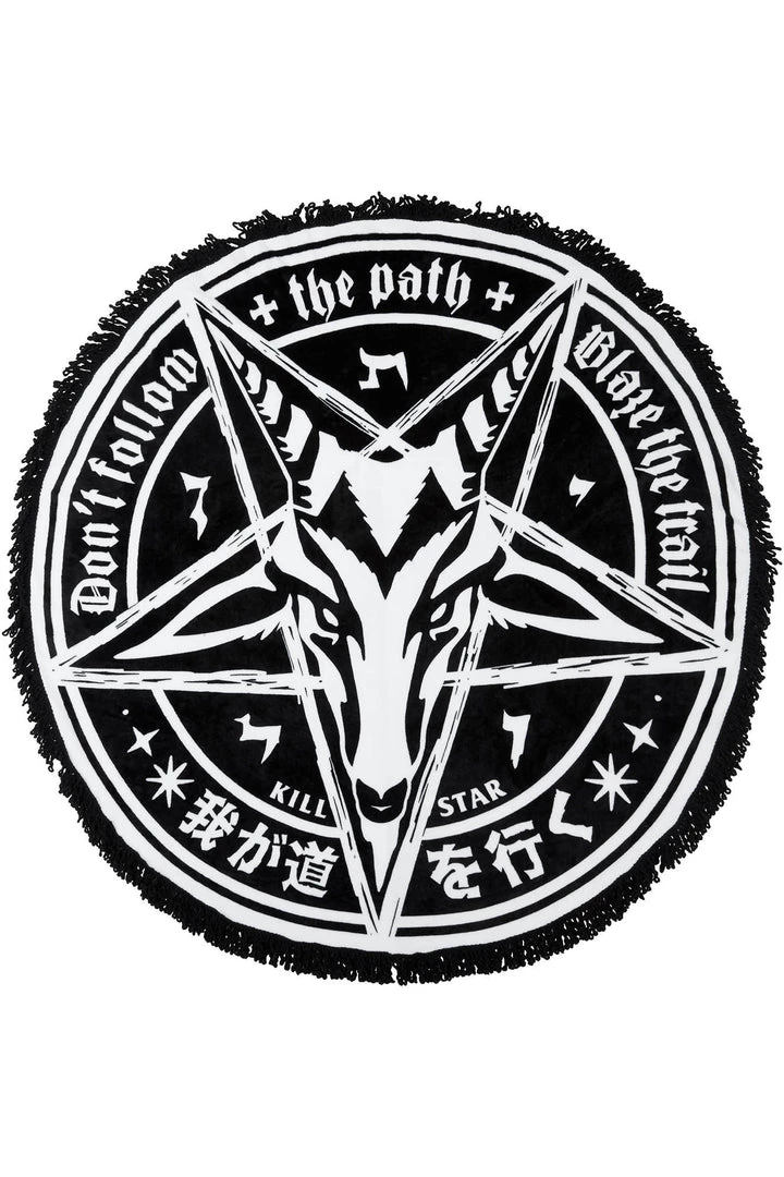 Looking to complete yer crypt with some killer details? Need a cool AF meditation blanket – or just a partner in yer rituals? The ‘Trailblazer’ round blanket in a lush soft fleece-fabric – with a large contrasting motif. Huge – so you get the desired effect! Completes yer life perfectly; also make the perfect gift!