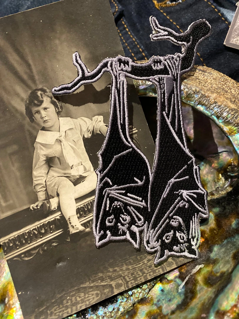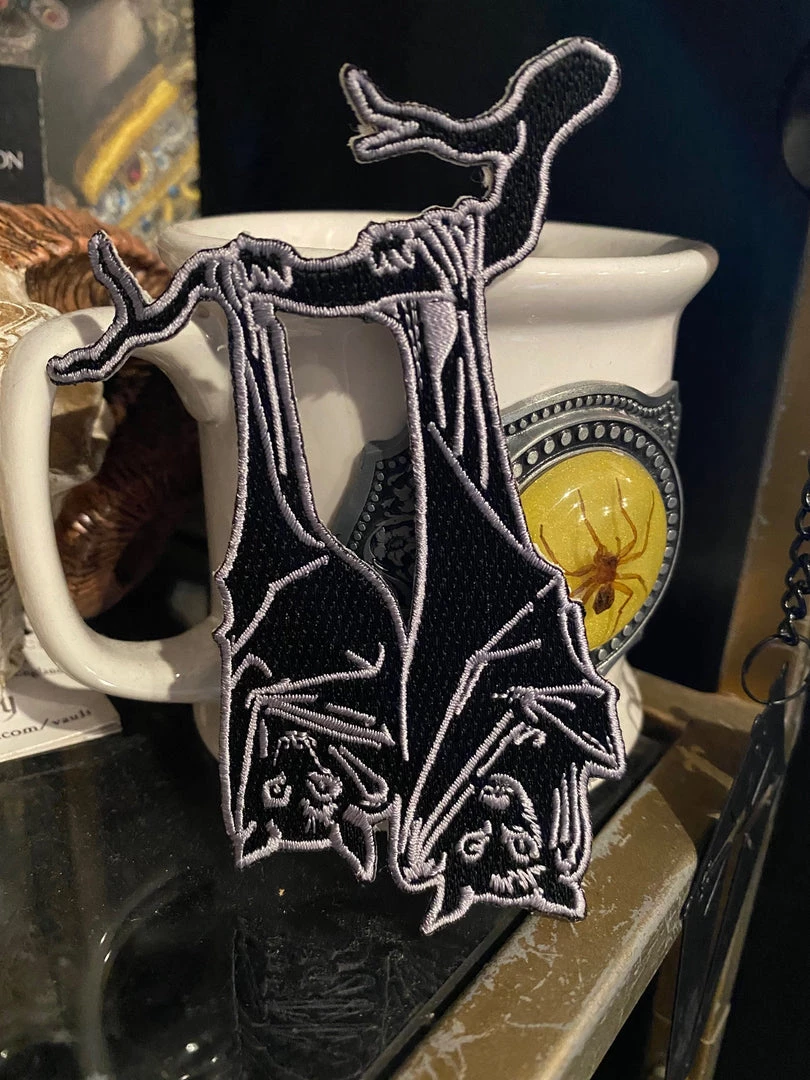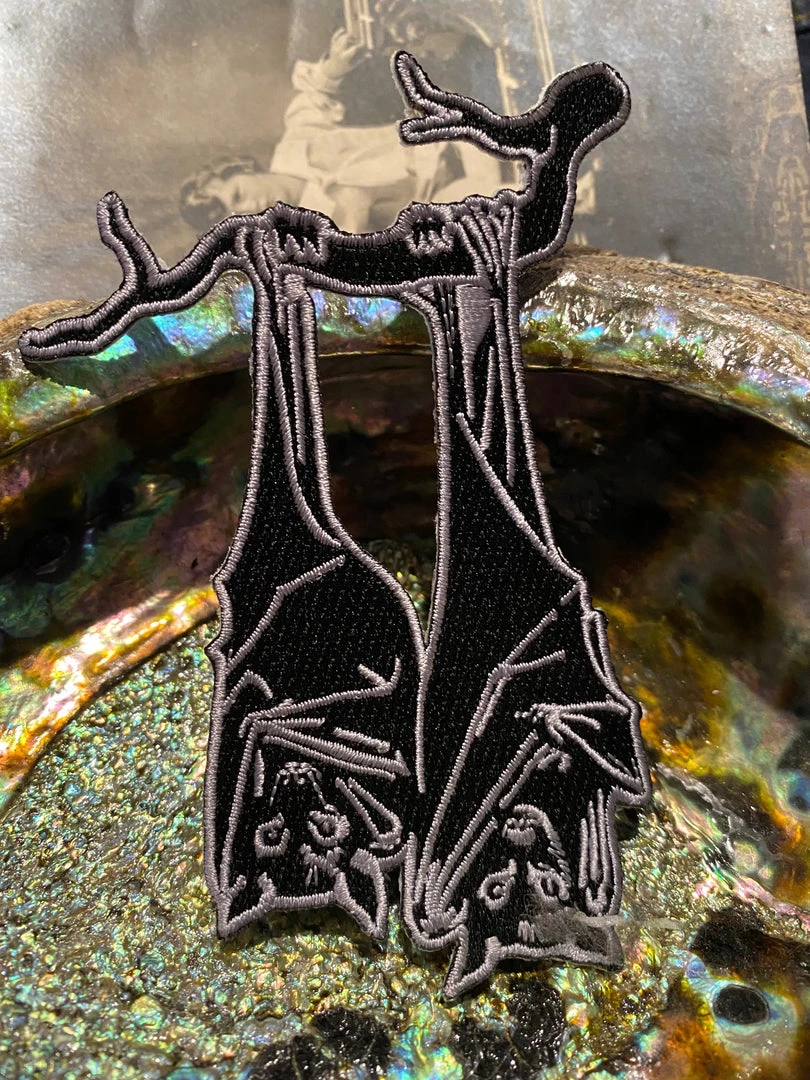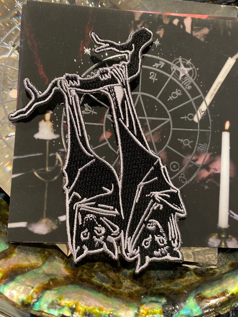 “Blood Sucking Love, Taking Flight” – The Nocturnal Lovers Bats Embroidered Patch embodies a duo of one of our favorite night dwelling creatures. Hanging together approx. 4.75″ in length, the fully embroidered patch includes an iron on backing.