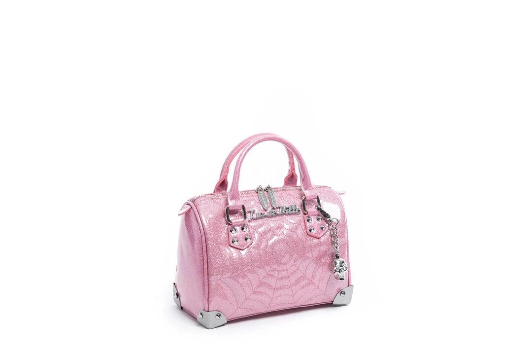 These beautiful Mini Maltese totes are perfect for all our spiderweb lovers out there.  Featuring spider web stitching on the front, tuck and roll stitching on the back, metal frame corners and a detachable skull bauble.