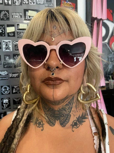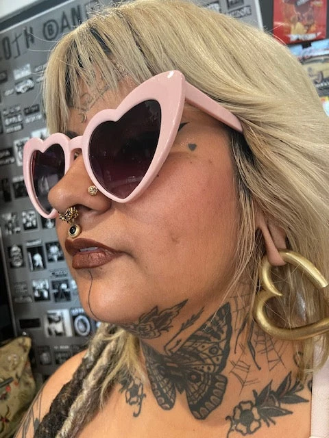 These sunnies are sure to capture your heart! These thick baby pink frames feature shiny, tinted lenses. Sure to make your heart melt!