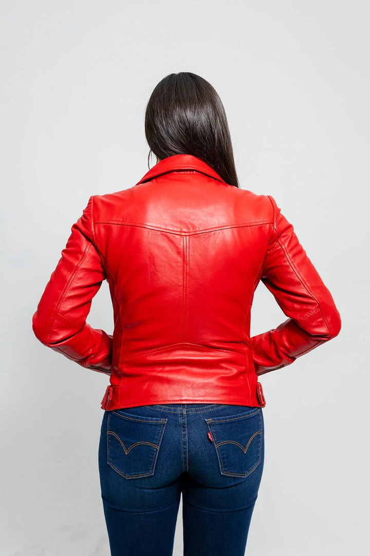 High Quality Leather Jacket – Feel free to drop a line if you have any questions! Chloe Women’s Leather Jacket in Red Fire – See Last Photo for Size Chart – Sizes Above 2XL are available by special order, email us to purchase one of those sizes!