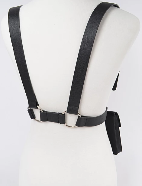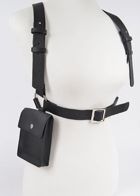 Suspender harness with pouch. Looks killer with dresses or body suits – featuring bondage rings, and an adjustable suspender straps + front body belt & pouch.