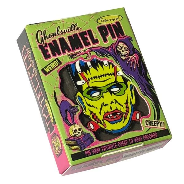 We waved our magic wand and cast a little spell, and made this fun monstrous collection cute as hell! We’ve made them in a new adorable size — not biggie sized like your fries. Each freaky metal enamel pin comes in a collector’s box — and just like the big ones — there’s a clear piece on the top.