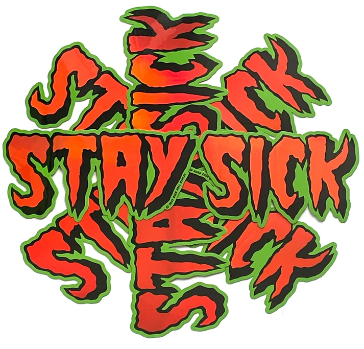 Fink-out your ride, or make boring furniture scream with 8″ x 2.25″ Stay Sick metallic decals!