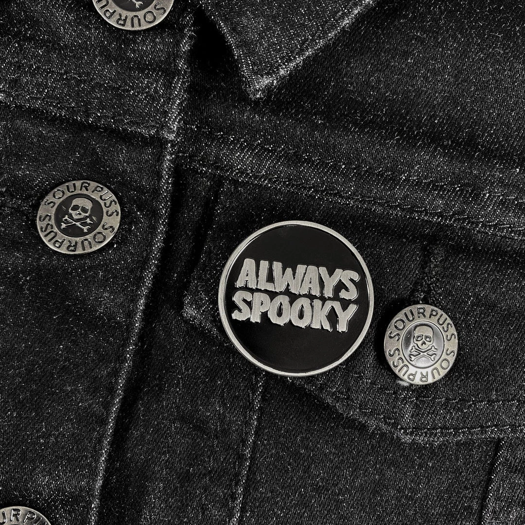 It’s not a holiday, it’s a lifestyle! The Always Spooky enamel pin lets everyone know that for you, every day is indeed Halloween. We’re planning on getting one of these for each of our Fall jackets!