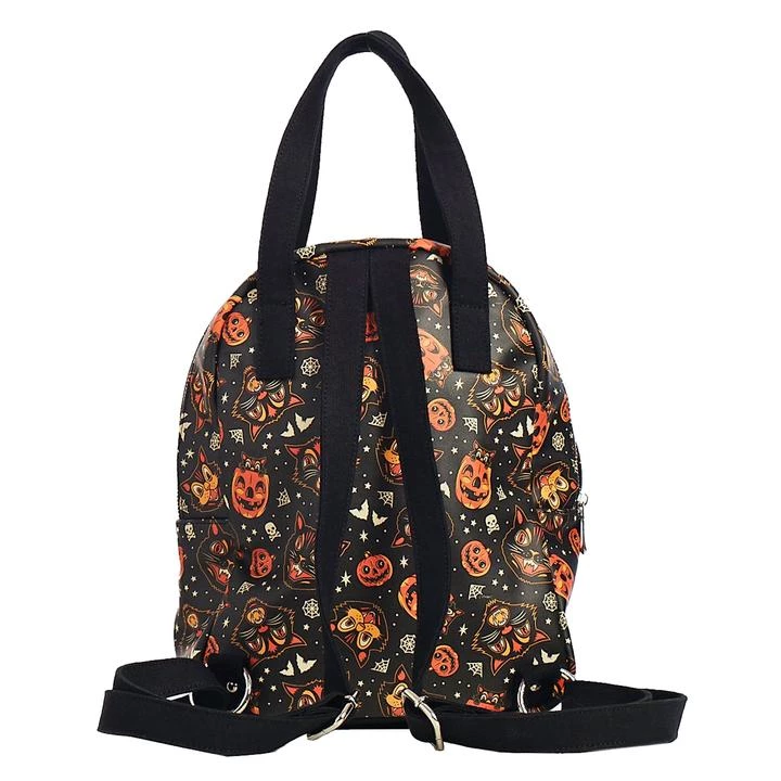 Black cats and pumpkins are some of our favorite things! You’ll find them all on the Classic Halloween pattern. The new mini backpack is a great option, to keep your hands free or to hand carry with the added canvas hand strap detail. We’ve used a high quality matte vinyl. There is an outer zip front pocket with the Sourpuss metal emblem. The inside is spacious, lined in black cotton and includes 2 inside pockets.