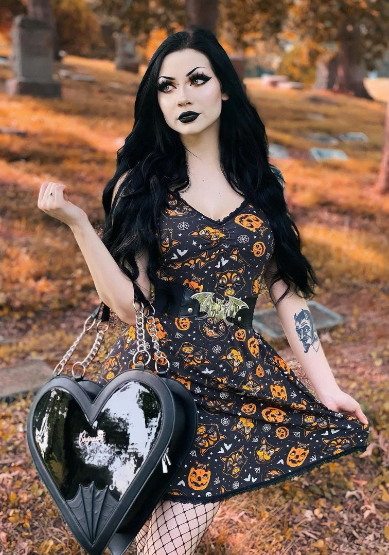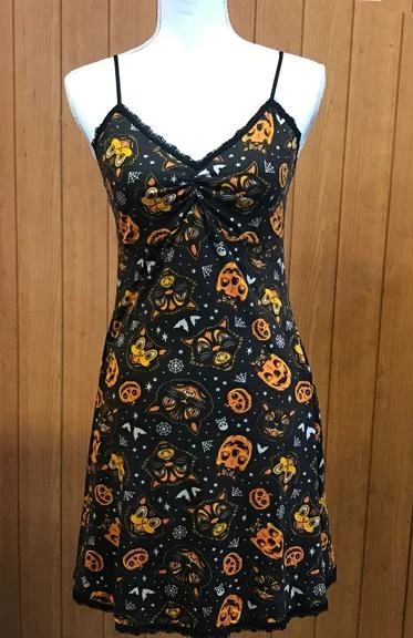 Have you seen the Classic Halloween slip dress? This super soft and slinky dress is comprised of a rayon knit, and feels amazing on your skin! It features our own Classic Halloween print – with black cats, jack o lanterns, spiderwebs, bats and more! It also has soft lace trim and adjustable straps for an absolutely perfect, comfortable fit!