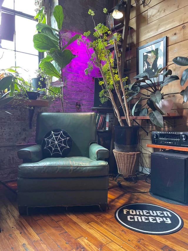 This Furry Spiderweb Pillow is so soft and lush, you’ll be wishing you were caught in it’s web! Created from a soft and furry low pile black faux fur, it has embroidered spiderweb details in white on the front. Makes a welcome accent on any chair, couch, or bed!