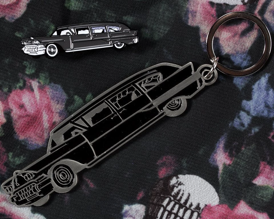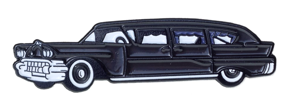 Take a ride to the other side in style with this Hearse enamel pin! Perfect for lovers of all that is creepy and morbid, just pop onto your favorite vest, jacket, or bag.