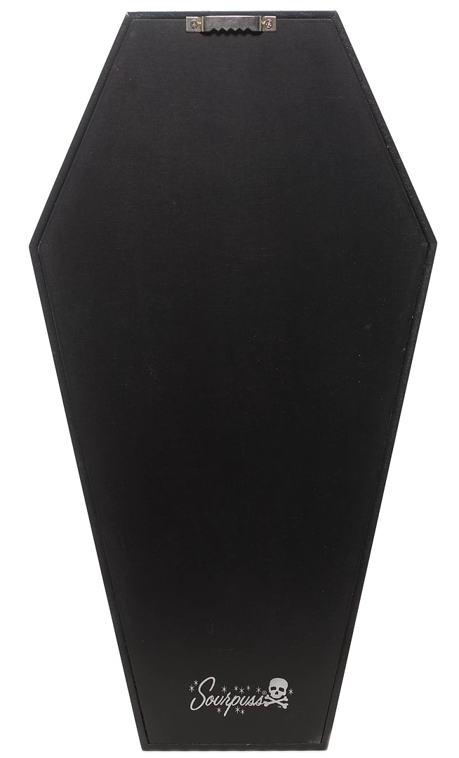 Our Striped Coffin Shelf is perfect for showcasing your most prized possessions. Thanks to the black and white striped backing, you can now better showcase darker objects and all your favorite tchotchkes – maybe some Beetlejuice or Tim Burton inspired pieces?! This shelf is ready to hang thanks to the sawtooth hanger attached to the back, or just place on a flat surface where you need some an extra display area!